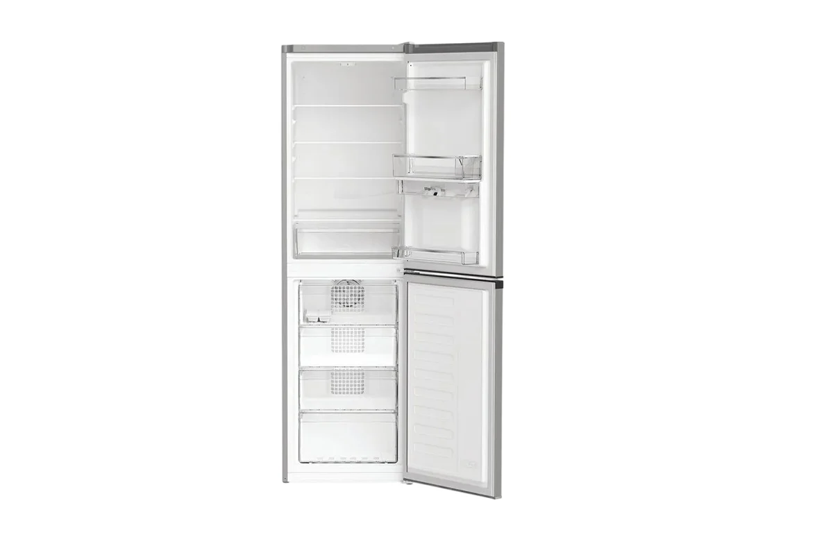 This Hotpoint freestanding 50/50 fridge freezer in stylish silver features thoughtful technology that keeps your food fresh and prevents waste. With a spacious capacity of 270L, it provides ample space for 15 shopping bags, so you can easily fit all your groceries in. Hotpoint clever No Frost technology ensures a constant airflow inside the freezer, so you'll never have the dreaded chore of defrosting it. Inside you'll find a dedicated Fresh Zone drawer, which maintains the correct temperature for crisp salad and long-lasting vegetables. Bright LED lighting illuminates the interior of your fridge so you can see everything clearly, and the reversible door design lets you position it perfectly in your space. Outside, the integrated water dispenser lets you quench your thirst instantly with quick and easy access to chilled water.