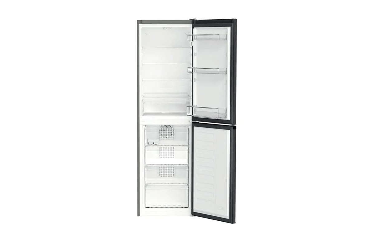 This Hotpoint freestanding Fridge Freezer offers a 50/50 split of fridge and freezer space and includes thoughtful technology that's focussed on keeping your food fresh and reducing waste. Available in sleek dark Inox, this Fridge Freezer has a generous capacity of 270L, which is ample space for 15 shopping bags of groceries - perfect for the weekly shop. Inside the freezer compartment, Hotpoint intelligent No Frost technology delivers constant airflow so you'll never need to spend time defrosting. Inside the fridge compartment, you'll find a dedicated Fresh Zone drawer that maintains the correct temperature to keep salads crisp and vegetables fresh for longer. Plus, adjustable shelves allow you to accommodate larger items effortlessly - ideal for large bottles and unexpected leftovers - and a bright LED lights illuminates the interior of your fridge so you can see everything clearly. Plus, Hotpoint reversible door design gives you the flexibility to choose whether the door opens from the left or from the right.
