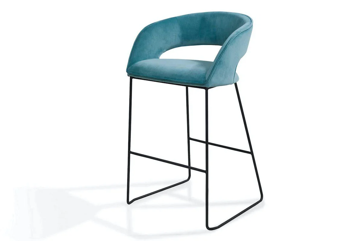 By combining a polished stainless steel base frame with a luxuriously smooth velvet upholstered seat, your new barstool becomes the most sought after seat in your home. With an open and curved back, the stool has a wonderfully relaxing shape that encourages you to unwind. The barstool also has two footrests that let you take the weight off your feet.